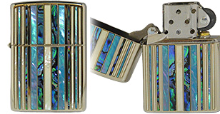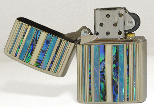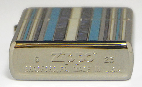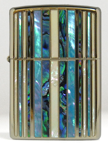 「貝貼り(シェル)」タテ・ストライプ柄、ギン色、